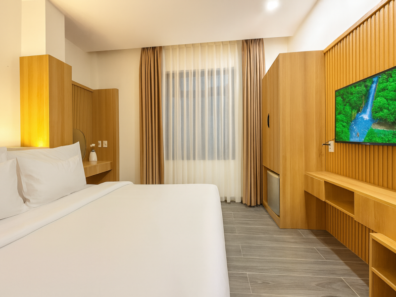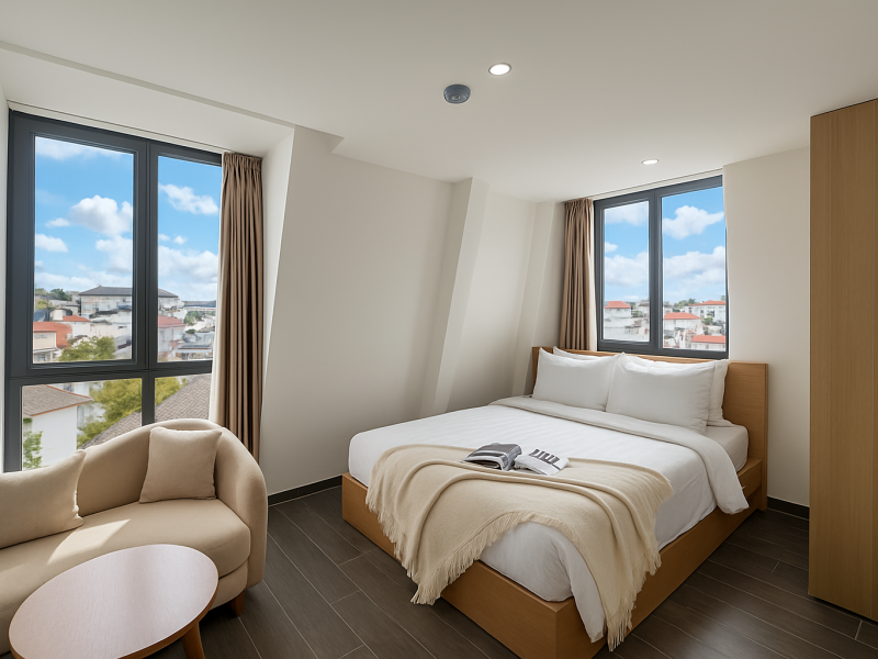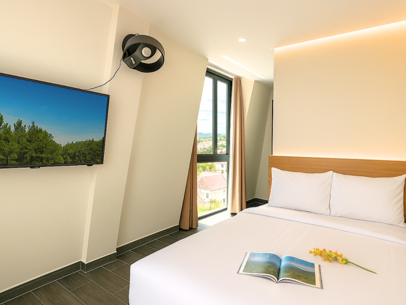 Designed for Da Lat’s cool mountain climate, the rooms are well-ventilated, clean and cozy, creating a warm and comfortable atmosphere for guests returning after a day of exploring the city.